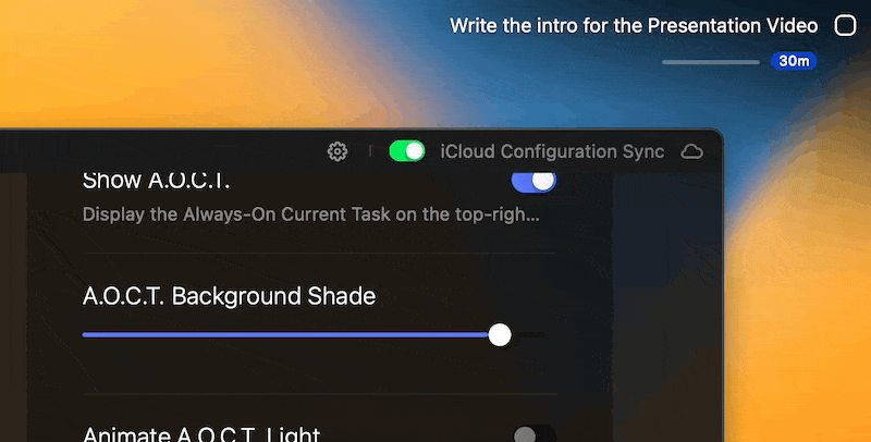 A bunch of options have been added to customise the look and feel of the A.O.C.T. including a background shade opacity slider.